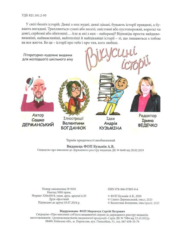 У світі безліч історій. Деякі з них нудні, деякі цікаві, бувають історії правдиві, а бувають вигадані. Трапляються сумні або веселі, змістовні або пустопорожні, короткі чи довгі, серйозні або збитошні… Але ж які з них – найкращі? Відповідь проста: найдивовижніші, найважливіші, найтепліші й найцікавіші історії - ті, що лишаються з тобою на все життя. Бо це - історії про тебе і про тих, кого любиш.