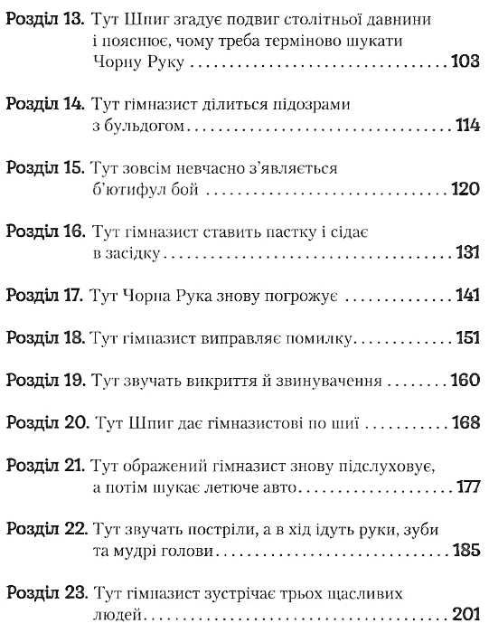 У Першій зразковій гімназії все зразкове – окрім учнів. Про гріхи кожного знає лиховісний незнайомець, який називає себе Чорною Рукою. Хто не виконає його наказів, тому непереливки. Саме через погрози Чорної Руки починаються небезпечні пригоди звичайного київського гімназиста Юрка Туряниці. Волею долі лише Чорна Рука знає, хто скоїв убивство, в якому звинувачують українського воїна-добровольця. І восьмикласник іде по сліду, як справжній детектив.