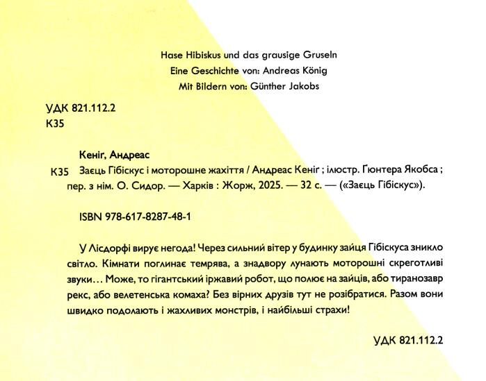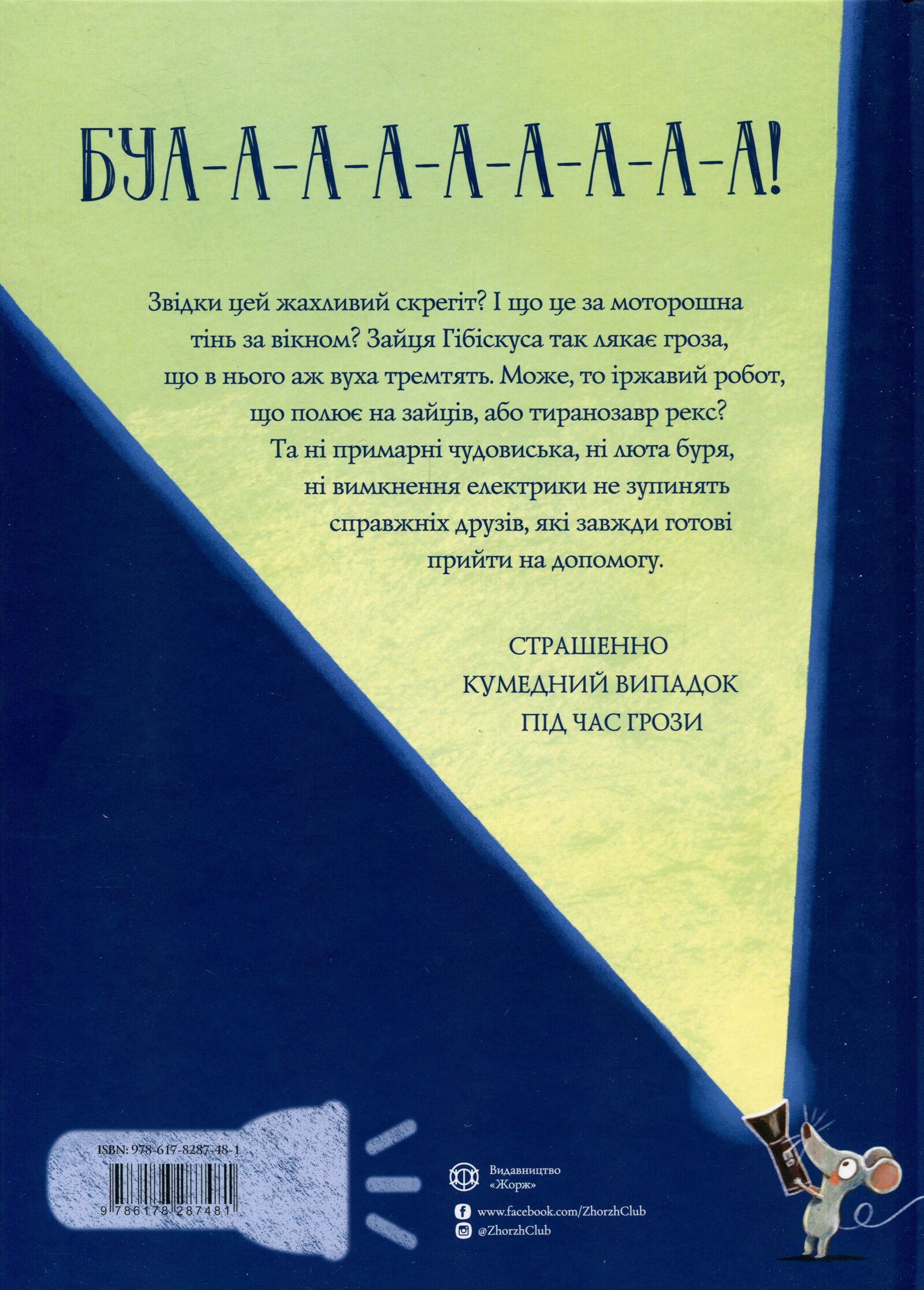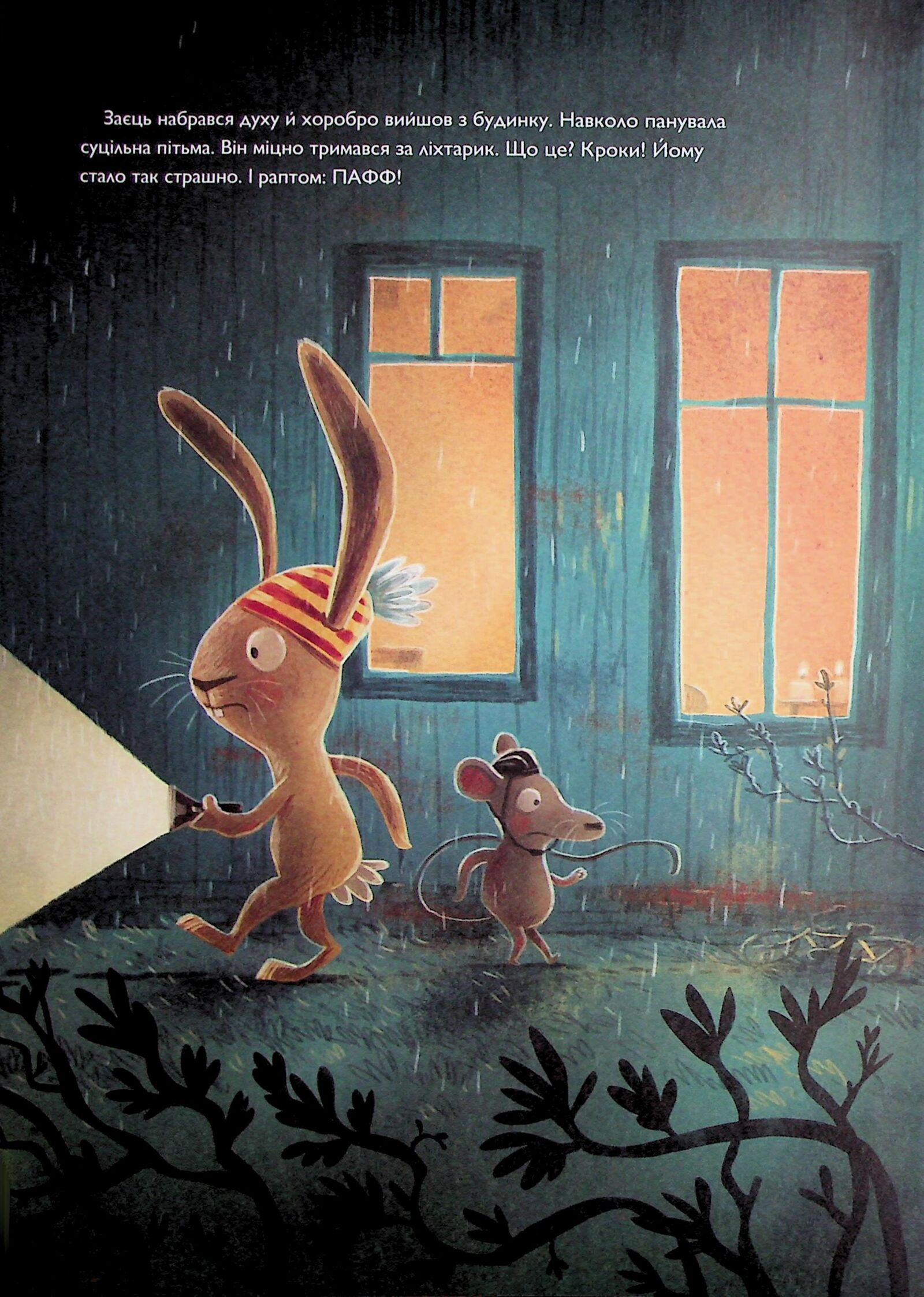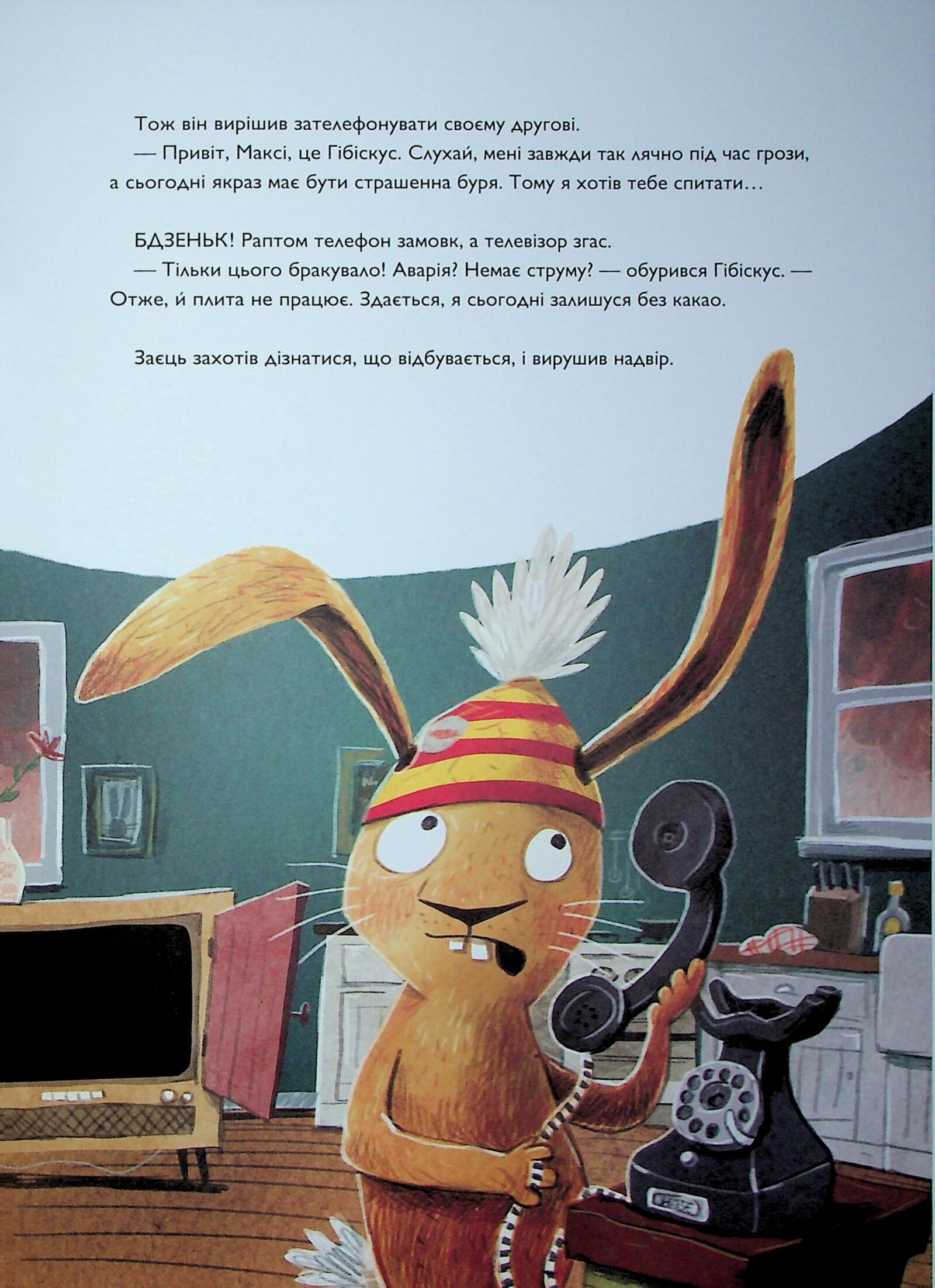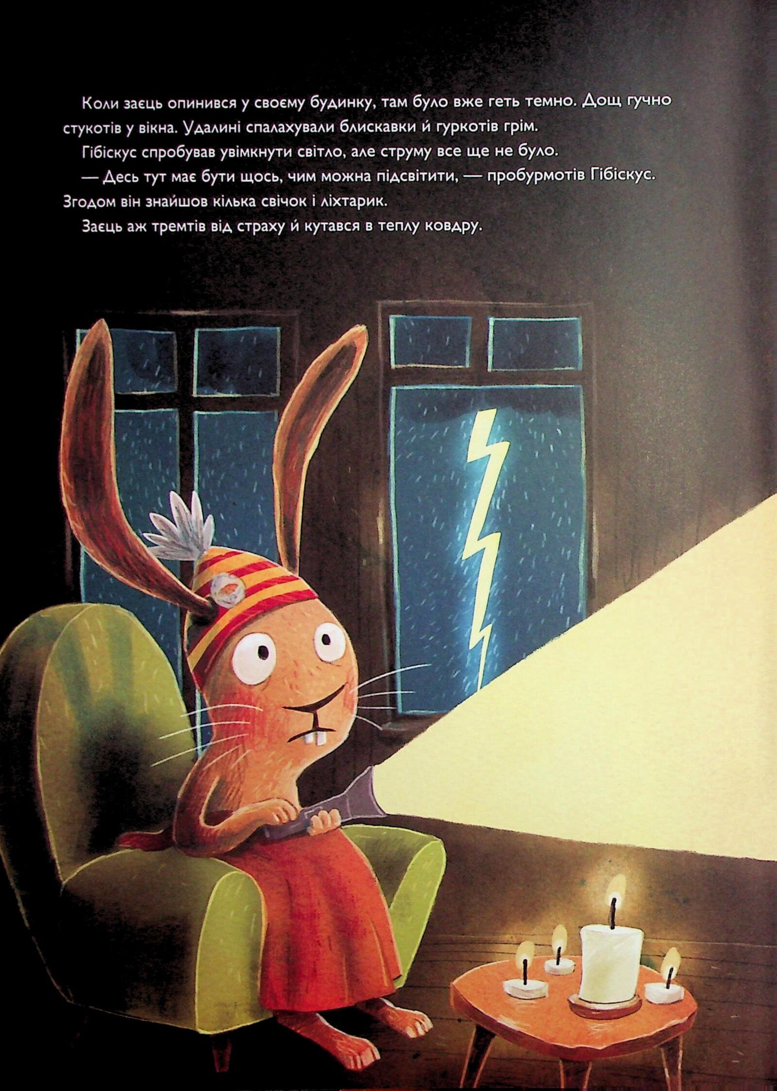 У Лісдорфі вирує негода! Через сильний вітер у будинку зайця Гібіскуса зникло світло. Кімнати поглинає темрява, а знадвору лунають моторошні скреготливі звуки… Може, то гігантський іржавий робот, що полює на зайців, або тиранозавр рекс, або велетенська комаха? Без вірних друзів тут не розібратися. Разом вони швидко подолають і жахливих монстрів, і найбільші страхи!