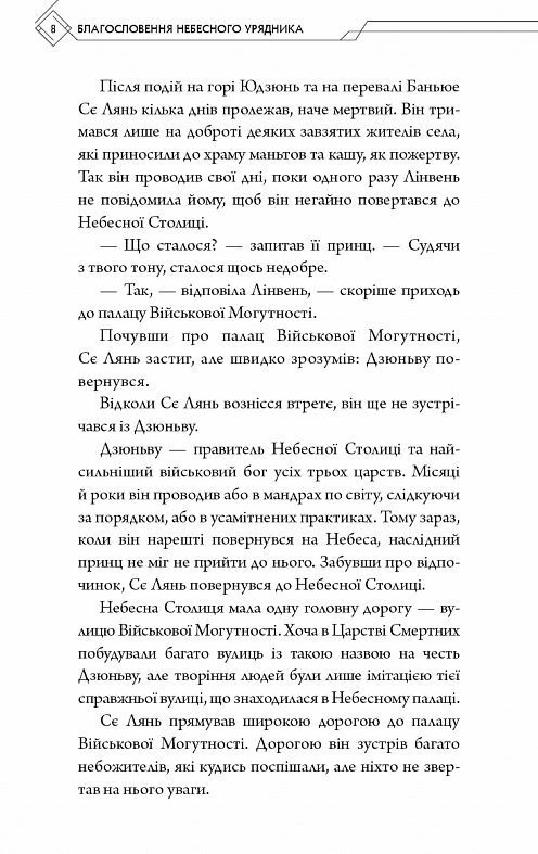 Другий том епічного фентезійного роману Мосян Тонсьов продовжує історію наслідного принца Сє Ляня, який, виконуючи небезпечну місію, стикається з Володарем привидів Хва Ченом — загадковим і харизматичним супутником, чиї наміри залишаються таємничими та непередбачуваними. Міфічний світ, сповнений інтриг та загадок, змушує героїв долати страхи, відкривати нові істини та випробовувати межі довіри. Подорож до Міста Привидів, де переплітаються жахи й принади світу мертвих, стає випробуванням їхньої відданості та відкриває темні таємниці минулого обох героїв. Ця історія про дружбу, жертовність і прийняття себе майстерно поєднує драму, гумор та романтику, створюючи незабутнє враження для шанувальників пригод і глибоких емоцій.