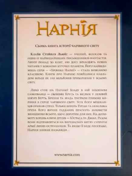 На допомогу король кличе друзів - Юстаса та Джил. Разом вони відправляться на вирішальну битву супроти армії лихих остраханців. Та якщо її буде програно, Нарнія зникне назавжди...