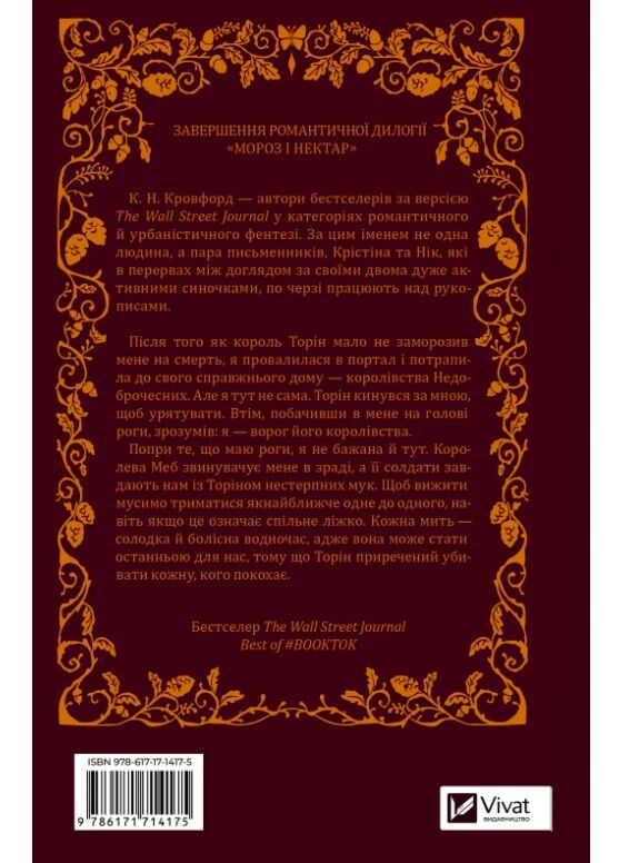 Попри те, що маю роги, я не бажана й тут. Королева Меб звинувачує мене в зраді, а її солдати завдають нам із Торіном нестерпних мук. Щоб вижити мусимо триматися якнайближче одне до одного, навіть якщо це означає спільне ліжко. Кожна мить — солодка й болісна водночас, адже вона може стати останньою для нас, тому що Торін приречений убивати кожну, кого покохає.