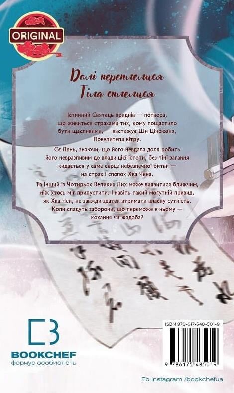 У четвертій книзі епічного фентезі продовжуються пригоди Сє Ляня — вигнаного принца, який двічі підносився на Небеса й двічі зазнавав падіння. Його супутники — досі загадковий володар привидів Хва Чен, могутній і водночас невимушений Повелитель вітру Ши Цінсюань та стриманий Повелитель землі Мін Ї — знову стикаються з темними силами, що кидають виклик як смертним, так і небесним урядникам. Серед містичних храмів, примарних свят та проклятих містечок вони розплутують змови Істинного Святця бриднів — примари, здатної вводити в оману навіть богів. На тлі кривавих народних гулянь, де життя і смерть змішалися в моторошному ритуалі, герої змушені випробувати не лише свої сили, а й довіру одне до одного. Ця частина історії поглиблює філософські мотиви серії — боротьбу між щирістю й удаванням, між покаранням і милосердям, між минулим, що не відпускає, і надією на відпущення гріхів. В цій частині серії гумор, напруження та ніжність химерно поєднуються з містикою й різноманіттям людських почуттів, створюючи світ, де навіть боги не можуть вберегтись від сумнівів і страждань