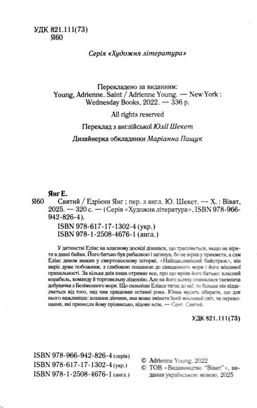 У дитинстві Еліас на власному досвіді дізнався, що трапляється, якщо не вірити в давні байки. Його батько був рибалкою і загинув, бо не вірив у прикмети, а сам Еліас дивом вижив у смертоносному штормі. «Найщасливіший байстрюк», він виріс дуже побожним, з глибокою пошаною до священного моря і його мінливої прихильності. За кілька днів юнак отримає все, про що мріяв його батько: власний корабель, команду й торговельну ліцензію. Але на його шляху опинилася таємнича добувачка з Безіменного моря. Що сильніше Еліаса тягне до неї, то більше він віддаляється від того, над чим працював останні роки. Юнак мусить обирати, що для нього важливіше: кохання дівчини, яка може змінити їхній мінливий світ, чи переконання, які принесли йому прізвисько, відоме всім, — Сент. Святий.