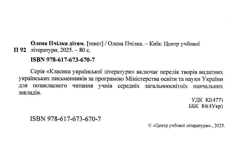 ерія «Класика української літератури» включає перелік творів видатних українських письменників за програмою Міністерства освіти та науки України для позакласного читання учнів середніх загальноосвітніх навчальних закладів.