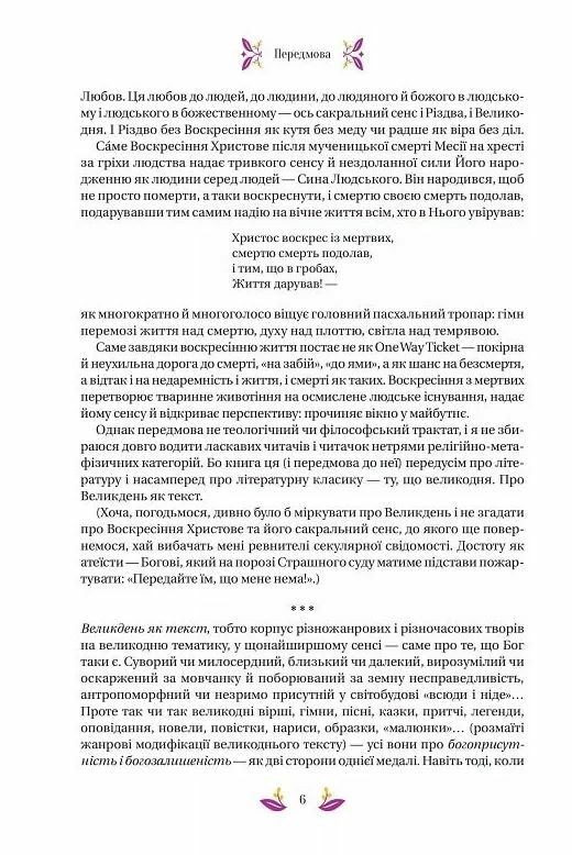 Книга «Великодня класика» — це збірка історій про Великдень, зразки української класики, що їх створили українські письменники і письменниці. Поезія і проза зливаються у спільному творчому потоці, який об'єднує мотив Воскресіння — Господнього і природного. Доробки митців зливаються у спільному творчому потоці й транслюють мотив Воскресіння Господнього. Кожен твір з антології унікальний: від сенсу, що закладений в його основу, до розкриття духовних образів і побудови концептуальних ідеологічних векторів. Поезія та оповідання про Великдень зосереджуються на внутрішньому відродженні, звʼязку з Богом і любові до ближнього. Іноді ці тематичні лінії виражено крізь дещо меланхолійний наратив, характерний для традиції свята. У такий спосіб класики демонструють, що найяскравіше світло проривається з темряви.