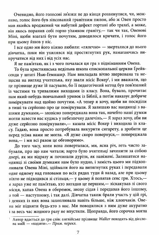 Усесвітньо відомий роман Джона Ірвінга «Молитва за Овена Міні» (1989) — це справжній гімн незламній дружбі двох хлопчиків, а згодом і молодих людей, у ті складні для Америки часи, коли війна у В’єтнамі спричинила драматичні суперечності в розбурханому суспільстві.
