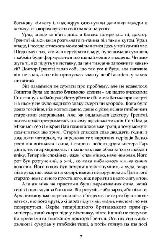 Заголовок на перший погляд ніби обіцяє щось похмуре, занадто серйозне, зображення тільки якихось клерикальних проблем. Насправді сюжет роману цілком живий, динамічний, подекуди напружений, повний несподіванок. На читача тут чекають неповторний гумор автора, дрібні й великі інтриги, кохання з перешкодами, непрості норови представників різних прошарків тодішнього англійського суспільства, зрештою — атмосфера самої епохи. Словом, вир життя. Така класика завжди актуальна й ніколи не застаріває.