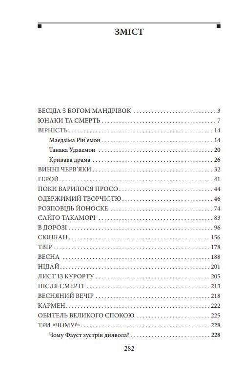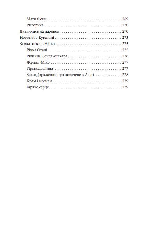 До видання увійшли твори Рюноске Акутаґави (1892—1927) різних років — новели й зовсім короткі, по-японськи лаконічні оповідання та мініатюри, витончені стилізації під середньовічну прозу, сумні та іронічні казки й притчі, в яких заховані потаємні глибинні смисли, що якнайкраще допомагає зрозуміти японську душу.