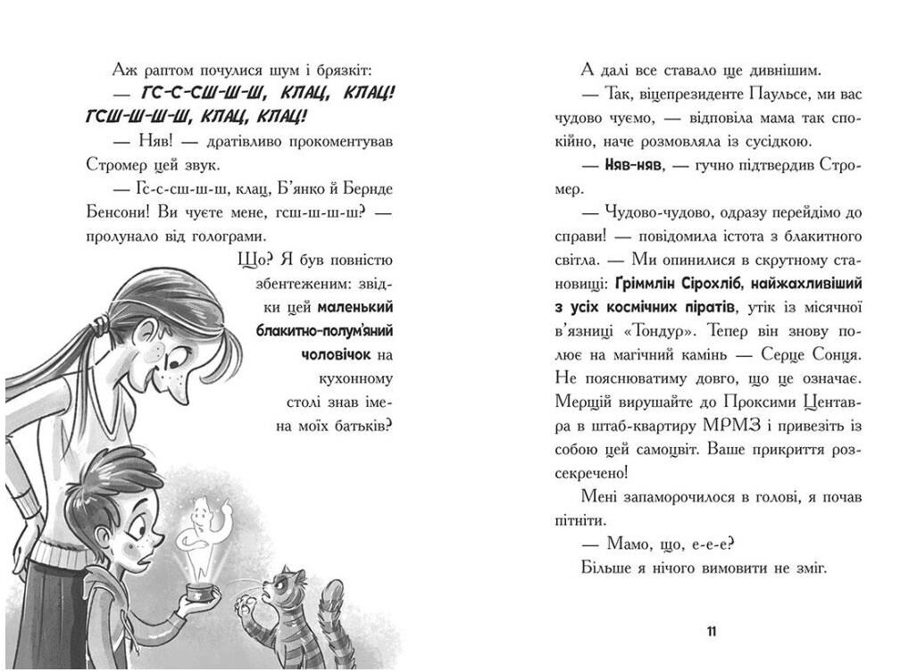 Одного ранку Семмі Бенсон знаходить у пачці з мюслі дивне голографічне повідомлення — послання з космосу! Так він дізнається, що його батьки — міжзоряні таємні агенти, а кіт насправді пілот космічного корабля! Тепер родина має вирушити на Проксиму Центавра, щоб доставити дорогоцінний камінь — Серце Сонця, на який полює підступний пірат Ґріммлін Сірохліб. Та коли Семмі випадково бере камінь до школи, усе виходить з-під контролю — і хлопець разом із друзями опиняються в епіцентрі шаленої міжгалактичної пригоди.