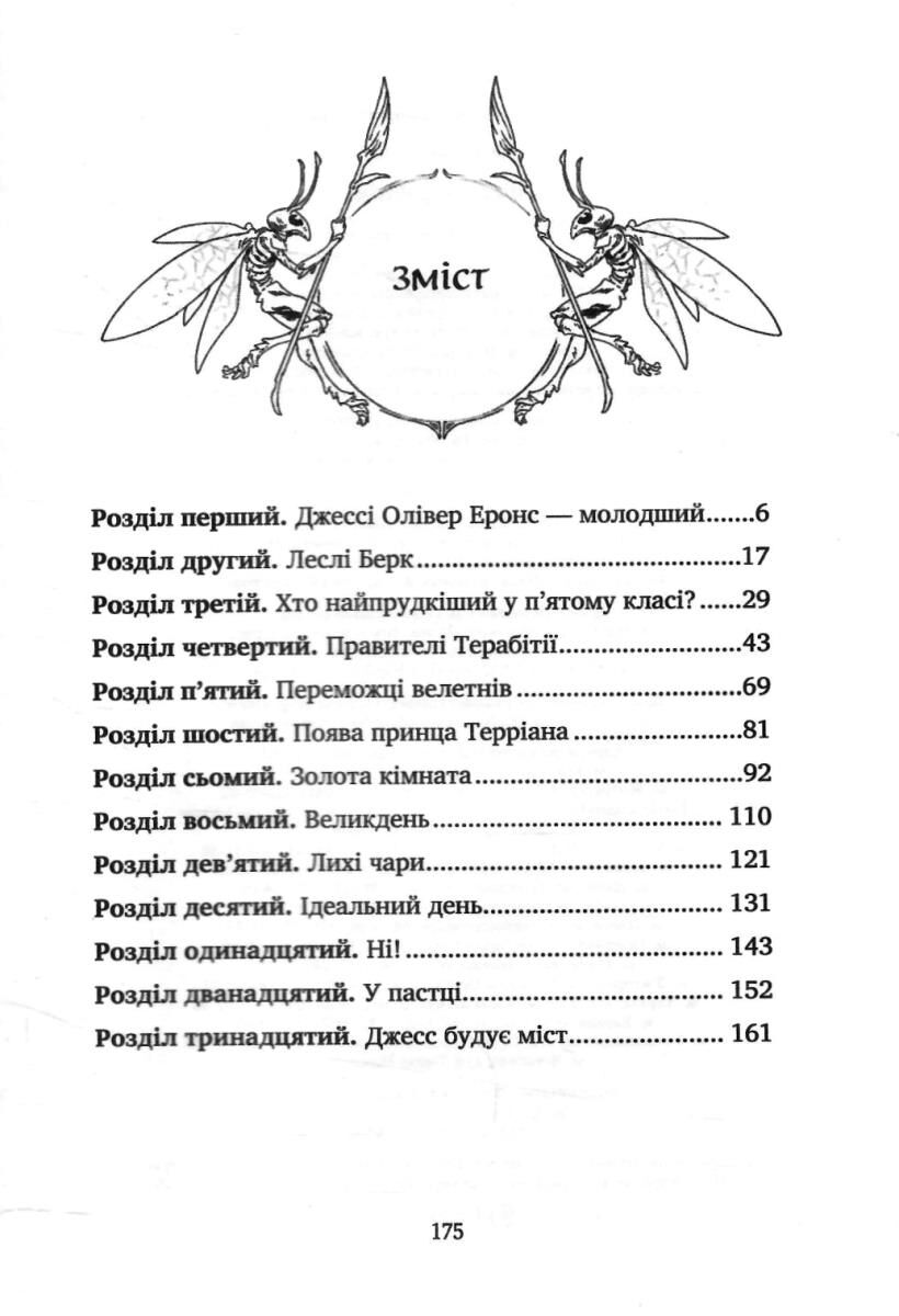 Ціле літо Джесс Еронс тренувався, щоб стати найкращим бігуном у п’ятому класі. І досягнув би мети, якби його не випередила новенька, Леслі Берк. Але цей програш не стає на заваді справжній дружбі, і діти цілими днями пропадають у лісі, де вигадують чарівне королівство — Терабітію. А в реальному світі на них чекають труднощі в школі, випробування на міцність, дрібні страхи і… розуміння, що треба завжди рухатися вперед.