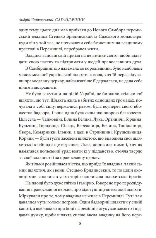 Андрій Чайковський (1857–1935) — український письменник і громадський діяч, автор соціально-побутових та історичних прозових творів різних жанрів. Упродовж тривалого часу його твори не видавали й ім’я письменника було напівзабуто. Роман А. Чайковського «Сагайдачний» у трьох книгах (1924–1929) присвячено біографії славетного козацького полководця та справжнього патріота Петра Конашевича-Сагайдачного, чий життєвий шлях простежено від дитинства до вершин військової слави. Написанню твору передувало ґрунтовне вивчення численних історичних документів із праць М. Грушевського, М. Максимовича, Д. Яворницького. Це масштабне епічне полотно, події якого розгортаються на широкому географічному та історичному тлі й відтворюють реалістичну панораму життя різних верств українського народу доби козаччини, зокрема останніх десятиліть XVI – початку XVII ст. Цей твір — про героїзм, самовідданість, патріотичні почуття українців, проявлені під час оборони рідної землі від турецько-татарських завойовників. А ще — про вірну дружбу та пристрасне кохання. У серії «Великий роман» виходить друком ще одна книжка Андрія Чайковського — «Козацька помста. Історичні повісті».