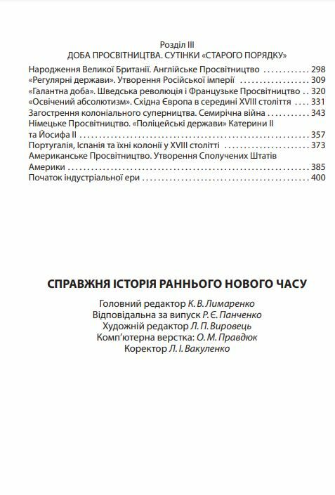 «Справжня історія Раннього Нового часу» — це книжка про народження сучасного світу, об'єднаного Великими географічними відкриттями, про добу абсолютних монархій і перших колоніальних імперій, Реформації і Просвітництва. Чому маленьким європейським державам вдалося підкорити цілі континенти? Кого насправді збагатили заокеанські золото і прянощі? Чим поява біржи допомогла науковій революції, а вживання кави — утвердженню прав і свобод людини? Як нестямне кохання могло знищити непохитні імперії? Де з'явилися перші газети і політичні партії? Ким насправді були загадкові масони і розенкрейцери? Відповіді на ці та багато інших питань дозволяють не лише дізнатися про цікаві факти, але й зрозуміти «логіку історії».