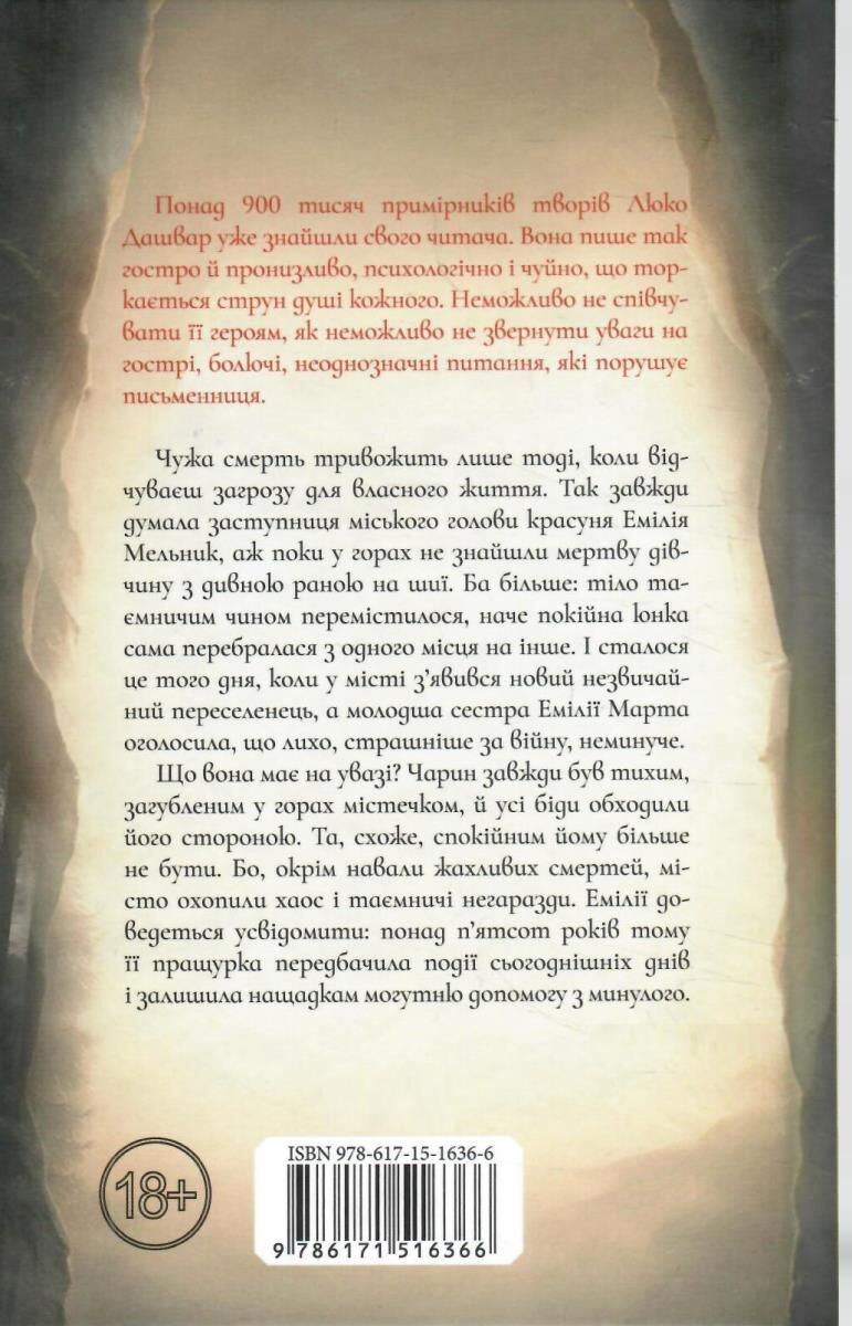 Що вона має на увазі? Чарин завжди був тихим, загубеним у горах містечком, й усі біди обходили його стороною. Та, схоже, спокійним йому більше не бути. Бо, окрім навали жахливих смертей, місто охопили хаос і таємничі негаразди.