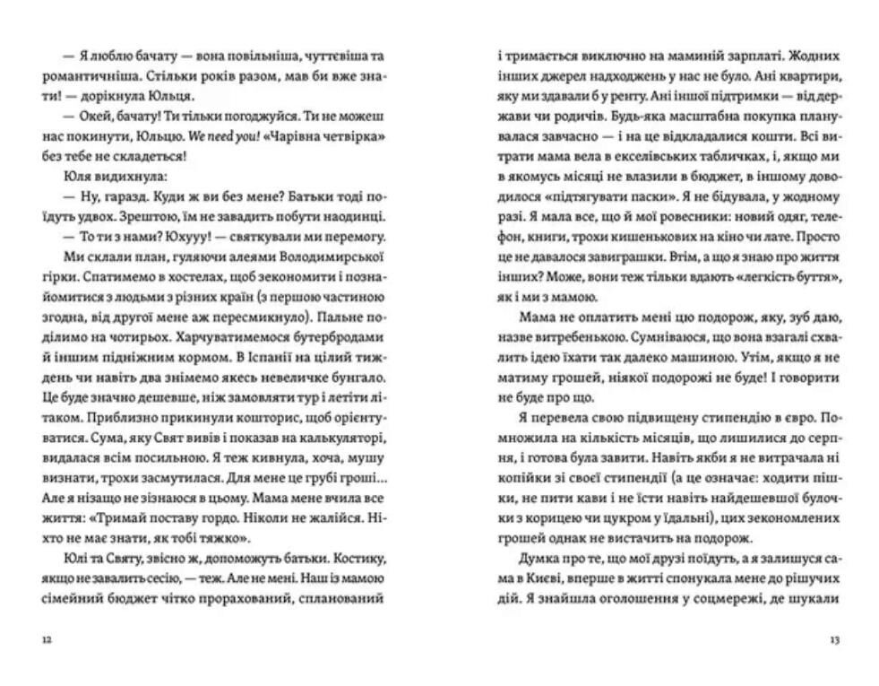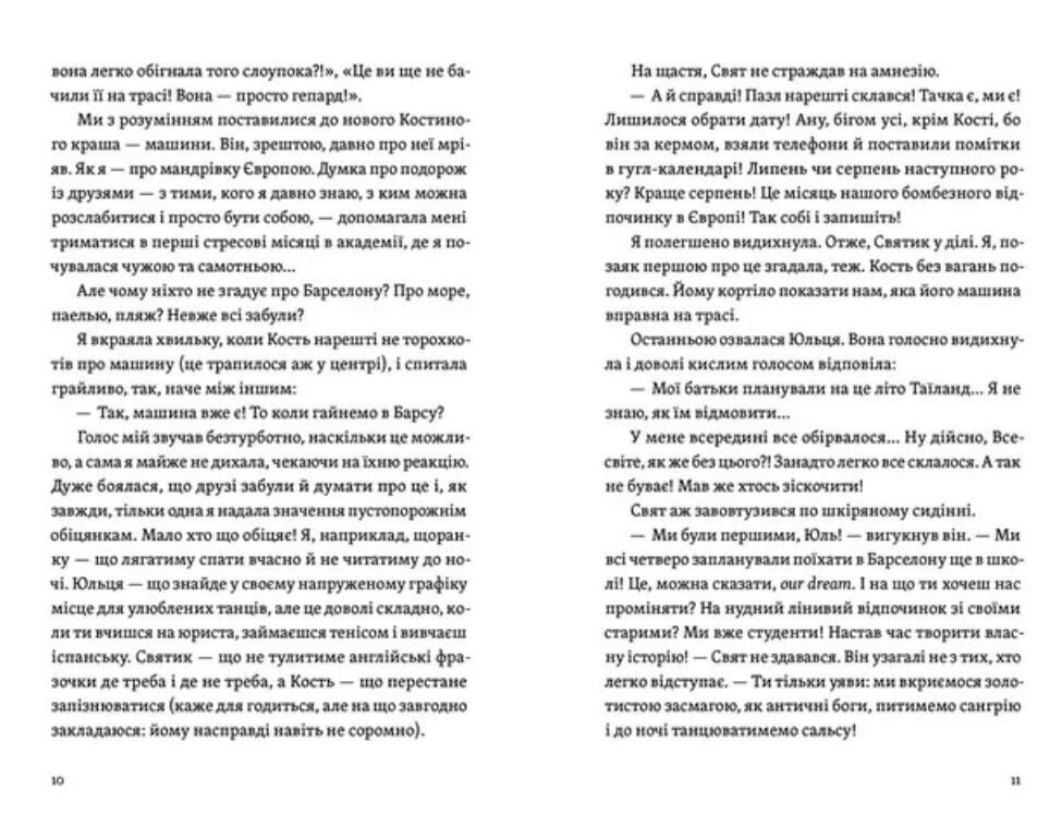 Діана та її шкільні друзі вирішили: щойно в когось із їхньої четвірки з’явиться власна автівка — вони гайнуть на ній через усю Європу до Барси… Гулятимуть до ночі, питимуть сангрію, танцюватимуть сальсу на міській площі, зустрічатимуть світанки на пляжі… Звучить як пісня! І ось — вони студенти першого курсу, і давня мрія нарешті стає можливою. Все продумано до деталей! Що може піти не за планом? Усе! Спершу стається несподівана перестановка — замість надійного старого друга з ними їде незнайомий норовливий красунчик… Далі — тримайтесь міцно! Крадіжка. Поліція. Ночівля просто неба. Шпиталь. Секрети, які неодмінно вийдуть назовні. Чи витримає всі ці випробування їхня дружба? Читайте у цій романтичній роуд-історії української письменниці Тетяни Стрижевської.