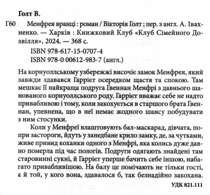 На корнуоллському узбережжі височіє замок Менфрея, який завжди здавався Гаррієт осередком щастя та спокою. Там мешкає її найкраща подруга Ґвеннан Менфрі з давнього шанованого корнуоллського роду. Гаррієт вважає себе не надто привабливою і тому, коли закохується в старшого брата Ґвеннан, упевнена, що в неї немає жодного шансу побудувати з ним стосунки.