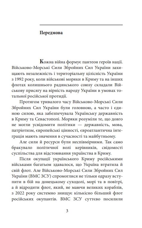 Військово-Морські Сили Збройних Сил України захищають незалежність і територіальну цілісність України з 1992 року. Після окупації українського Криму російськими військами здавалося, що Україна втратила й свій флот. Але ВМС ЗСУ не тільки одразу вступили в бій на суходолі, морі та в повітрі, а й відродили флот, який, не маючи великих кораблів, з 2022 року системно нищить кількісно більший флот російських окупантів. Це все зробили люди. Герої флоту. Герої України.