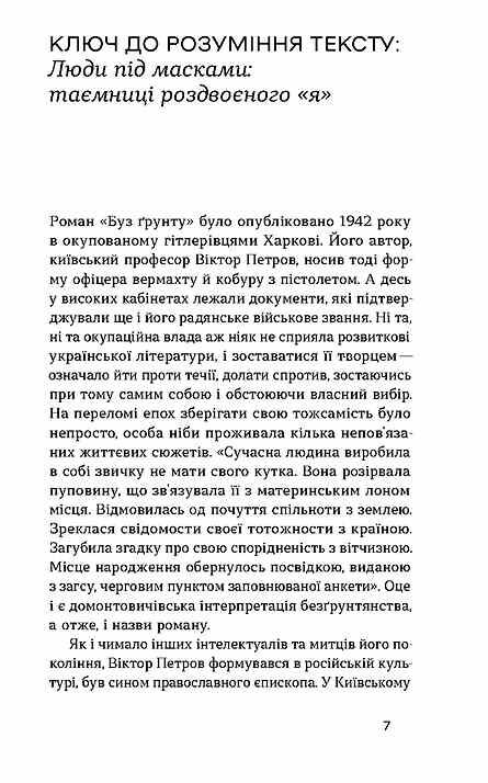 Роман «Без ґрунту» й оповідання «Помста», «Приборканий гайдамака» та «Ой поїхав Ревуха…» об'єднані спільною темою. Це історії про співіснування в одній людині суперечливих ідентичностей і потреби прикидатися тим, ким не почуваєшся.