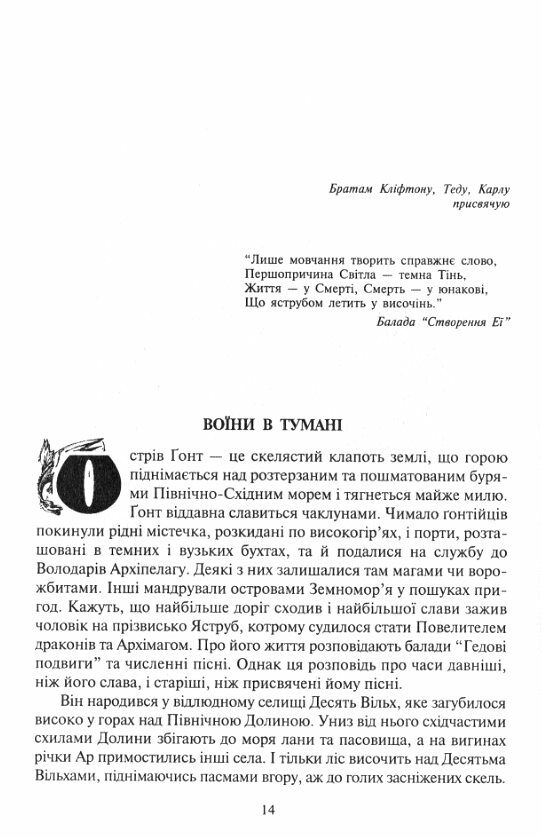 Це повість про його випробування, про те, як осягав він словеса потужних заклинань, як приборкав дракона, старого як світ, як він ходив до царства смерті, щоб відновити Рівновагу.