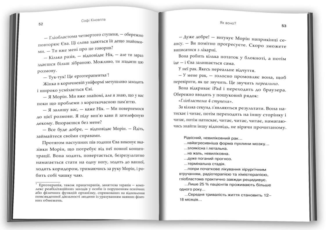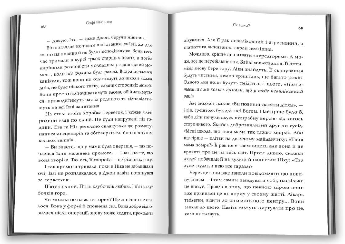 Це - найбільш автобіографічна книга Софі Кінселли, знаної своїм блискучим легким стилем і дотепними історіями про абсолютно різних жінок. Але тут вона зовсім інша: щира, вразлива, глибока. Вона змінює імена, переставляє факти, але залишає найголовніше - відвертість, яка нікого не залишить байдужим.