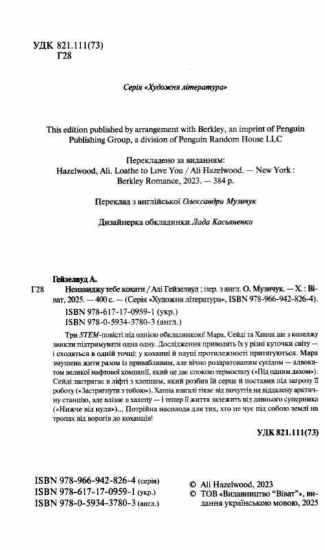 Мара, Сейді та Ханна ще з коледжу звикли підтримувати одна одну. Дослідження приводять їх у різні куточки світу — і сходяться в одній точці: у коханні й науці протилежності притягуються. Мара змушена жити разом із привабливим, але вічно роздратованим сусідом — адвокатом великої нафтової компанії, який не дає спокою термостату («Під одним дахом»). Сейді застрягає в ліфті з хлопцем, який розбив їй серце й поставив під загрозу її роботу («Застрягнути з тобою»). Ханна взагалі тікає від почуттів на віддалену арктичну станцію, але влізає в халепу — і тепер її життя залежить від давнього суперника («Нижче від нуля»)… Потрійна насолода для тих, хто не чує під собою землі на тропах від ворогів до коханців! Легка проза Loathe to Love You подарує вже класичне для Алі Гейзелвуд поєднання науки, комедії й романтики, підгострене гарячими сценами еротики.