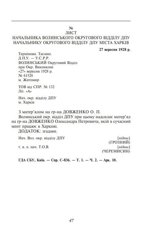 Ця книжка містить розповідь про незнаного Олександра Довженка (1894–1956). Учасник боротьби за незалежну Україну, згодом член партії «боротьбистів», а потім дипломат, художник, письменник і кінорежисер зі світовим ім’ям, він опинився під щільним багаторічним наглядом комуністичних спецслужб. Вони фіксували кожен його крок, його настрої, плани, його діяльність, а в його найближчому колі було чимало інформаторів. Автор-упорядник використовував унікальні документи й матеріали зі справи-формуляра, а також деякі інші архівні джерела. Їх аналіз дає змогу побачити й почути зовсім іншого Олександра Довженка. Змушений створювати комуністичний кіноканон, він водночас був нонконформістом, давав реалістичні й безжальні оцінки панівного ладу. Видання розраховане на широке коло читачів.