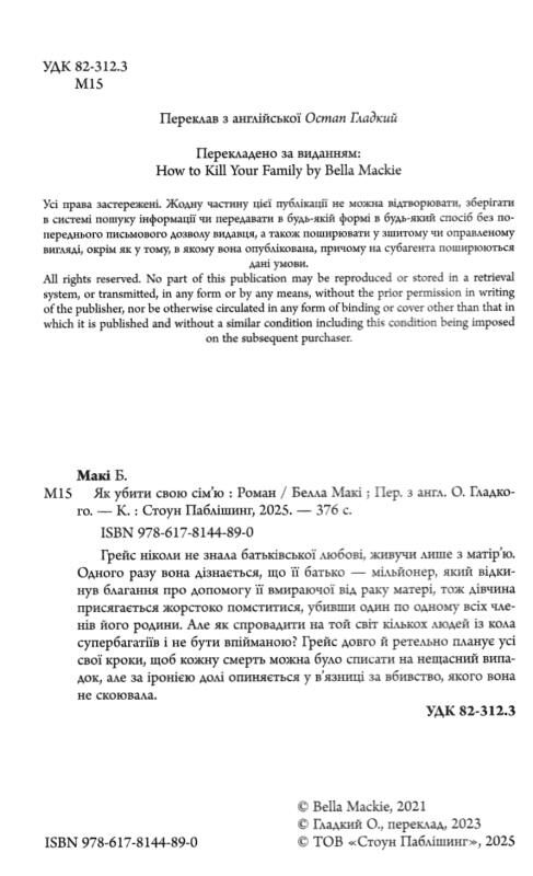 Одного разу вона дізнається, що її батько — мільйонер, який він відкинув благання вмираючої від раку матері про допомогу, тож дівчина присягається жорстоко помститися, вбивши один по одному всіх членів його родини. Але як спровадити на той світ кількох людей із кола супербагатіїв і не бути впійманою? Грейс довго й ретельно планує усі свої кроки, щоб кожну смерть можна було списати на нещасний випадок, але за іронією долі опиняється у в’язниці за вбивство, якого вона не скоювала