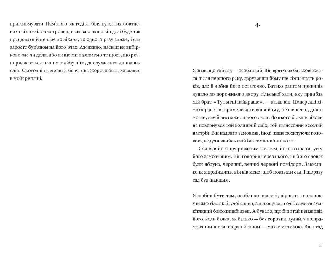 У новому романі найвідомішого сучасного болгарського письменника є все, за що його віддавна люблять вибагливі читачі, поважають літературні критики й дедалі частіше вшановують журі престижних міжнародних премій: забарвлена світлою тугою лірична оповідь, філігранна робота з темами часу й пам’яті, вишукані й несподівані метафори, витончений тихий гумор і — попри зовнішню фрагментарність — дивовижна внутрішня цілісність. «Садівник і смерть» — це роман про болісний відхід найближчої людини, але також про воскресіння і безсмертя. Помираючи, садівник стає садом, а сад щовесни повертається до життя.