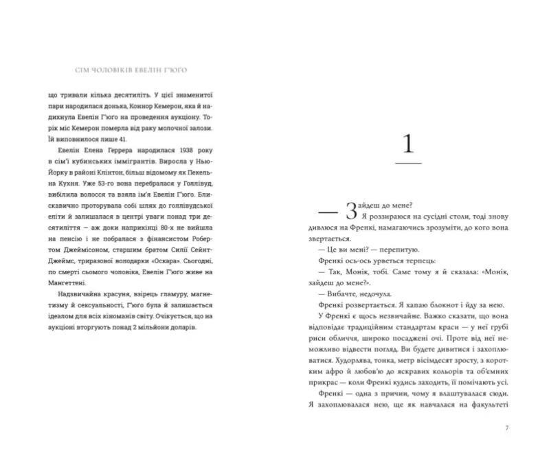Сповнена рішучості використати цю можливість, Монік вислуховує історію життя кінодіви. Від її шляху до Лос-Анджелеса у 1950-х до рішення залишити шоу-бізнес у 80-х і, звичайно, про сім чоловіків у житті Евелін.