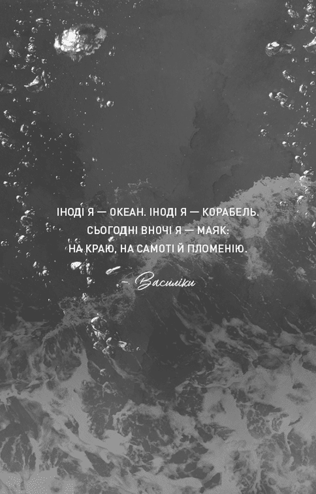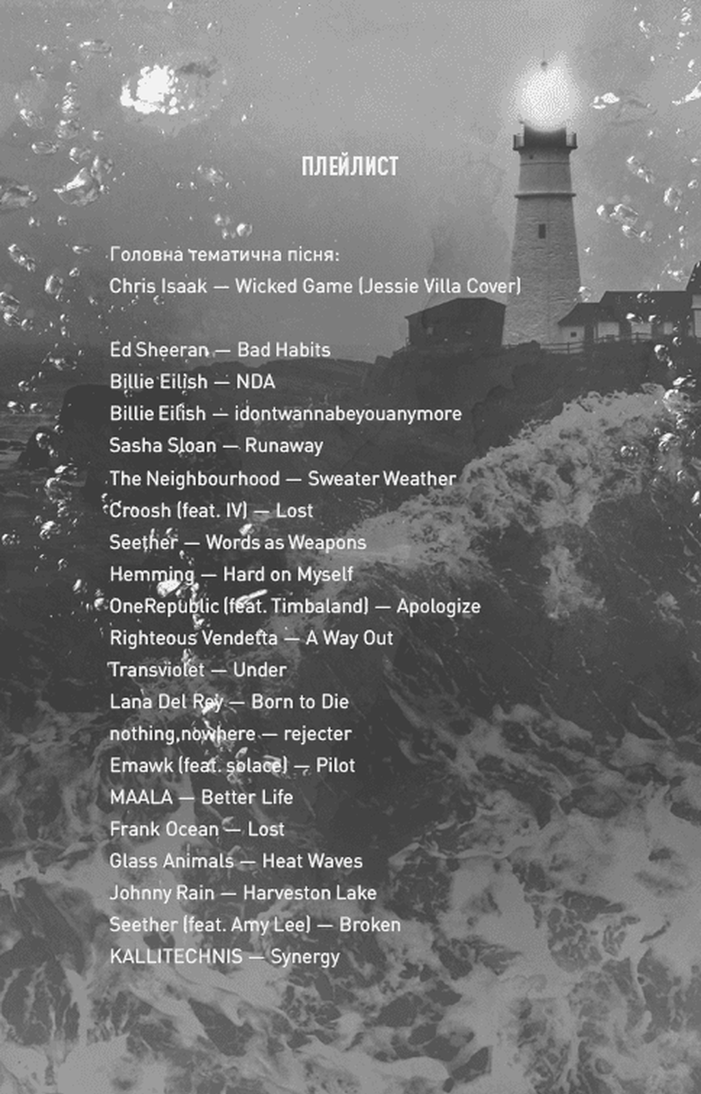 Хто я? Вже давно забула відповідь на це питання. Відтоді, як втекла з того будинку, так відчайдушно прагнучи вирватися, я пішла лише в тому, що було на мені, і в шкарпетках. Після того дня я завжди ходила лише в краденому взутті. Можливо, я дівчина, яка шукає сенс життя в безликих чоловіках? Вони всі були такими легко забутими. Допоки не з’явився він. Він завів мене під водоспад і змусив забути моє ім'я, а натомість я взяла його. Енцо Вітале. Загадковий чоловік, який завжди любитиме лише морські глибини. Або, точніше, хижаків, що їх населяють. Виявилося, він не так вже й відрізняється від монстрів, яких годує. Він заманив мене на свій човен, як рибу в океан, шукаючи помсти за мій злочин. Якби я усвідомила його наміри і те, що сильний шторм залишить нас потерпілими від корабельної аварії, я б втекла. Тепер я дівчина, яка шукає притулку в напівзруйнованому маяку з чоловіком, який ненавидить мене майже так само сильно, як і прагне мене.