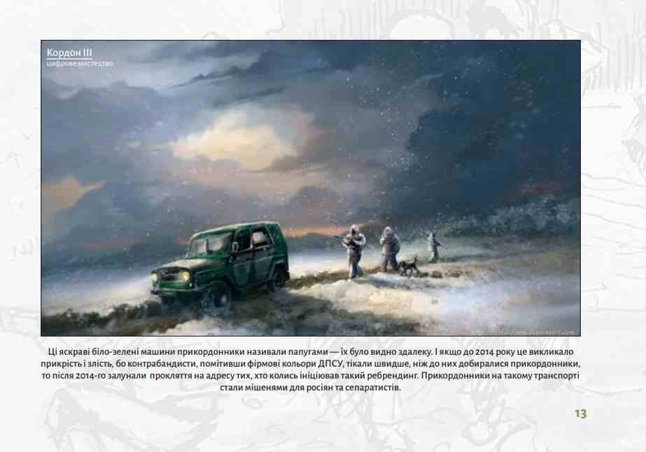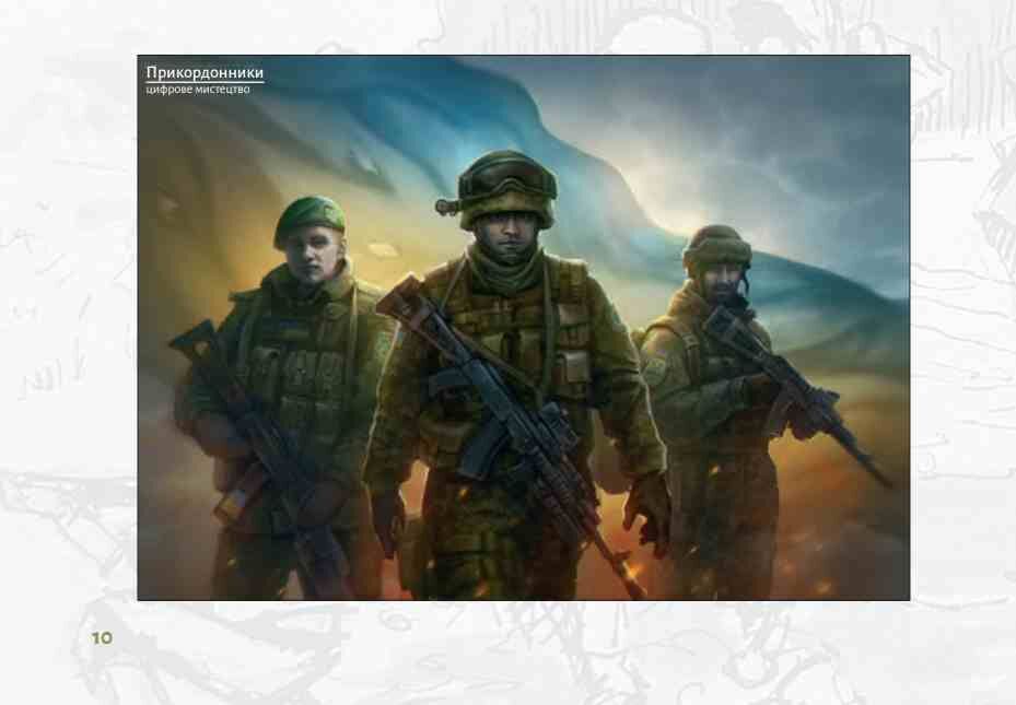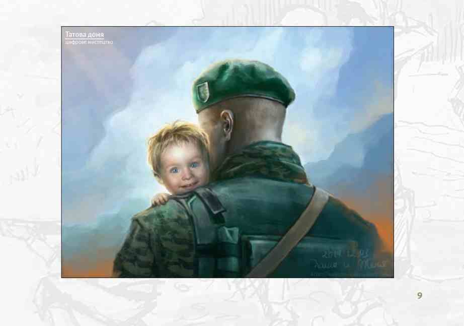 «Військові та хмари» — не просто альбом робіт. Це своєрідний візуально-терапевтичний щоденник художниці, яка з 2014 року розповідає, що її підтримує, дає сили творити, надихає вірити в те, що в нас усе вийде. Зображувана нею війна багато в чому — фіксація і її особистісних емоцій та переживань, і тих, кого вона малює, оскільки багато робіт засновані на реальних історіях, фотографіях і відео. Техніка художниці — комп'ютерна графіка. Проте у виданні зібрано не лише цифрові роботи. Частина книжки — це замальовки, які авторка привозила з поїздок у підрозділи або зробила за матеріалами, наданими військовими.