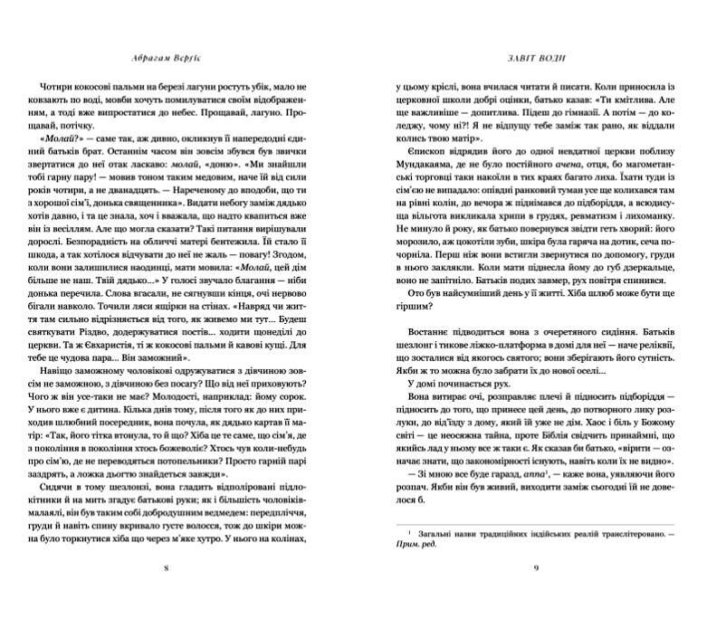 Роман Абрагама Верґіса — це не просто сімейна сага в екзотичних декораціях. Це мудра і добра розповідь про те, що сім’ю створює не кровна спорідненість, а спільність долі; що вибір є завжди, але не завжди є сили його здійснити; що всі ми навіки пов’язані одне з одним своїми діями і бездіяльністю і що ніхто не залишається на самоті.