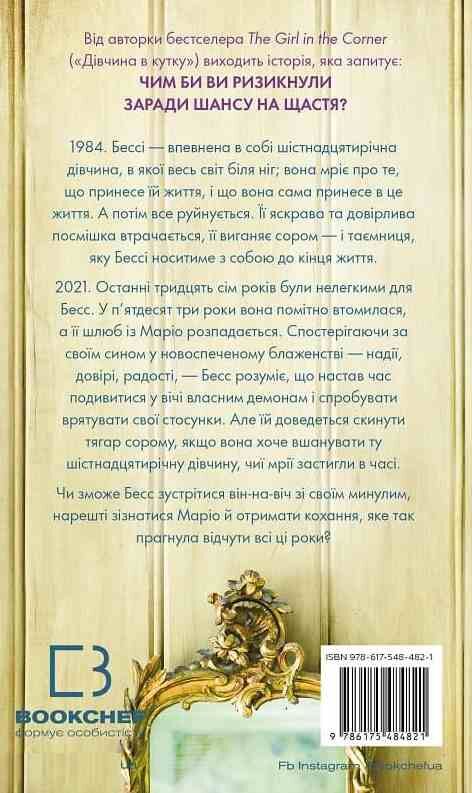 1984. Бессі — впевнена в собі шістнадцятирічна дівчина, в якої весь світ біля ніг; вона мріє про те, що принесе їй життя, і що вона сама принесе в це життя. А потім все руйнується. Її яскрава та довірлива посмішка втрачається, її виганяє сором — і таємниця, яку Бессі носитиме з собою до кінця життя. 2021. Останні тридцять сім років були нелегкими для Бесс. У п’ятдесят три роки вона помітно втомилася, а її шлюб із Маріо розпадається. Спостерігаючи за своїм сином у новоспеченому блаженстві — надії, довірі, радості, — Бесс розуміє, що настав час подивитися у вічі власним демонам і спробувати врятувати свої стосунки. Але їй доведеться скинути тягар сорому, якщо вона хоче вшанувати ту шістнадцятирічну дівчину, чиї мрії застигли в часі. Чи зможе Бесс зустрітися він-на-віч зі своїм минулим, нарешті зізнатися Маріо й отримати кохання, яке так прагнула відчути всі ці роки?