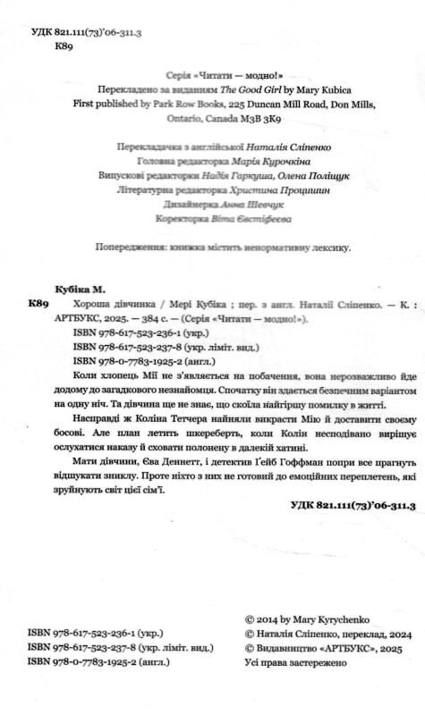 Коли хлопець Мії не з’являється на побачення, вона нерозважливо йде із загадковим незнайомцем до нього додому. Спочатку він здається безпечним варіантом на одну ніч. Та дівчина ще не знає, що скоїла найгіршу помилку в своєму житті. Насправді ж Коліна Тетчера найняли викрасти Мію й доставити своєму босові. Але план летить шкереберть, коли Колін несподівано вирішує ослухатися наказу й сховати полонену в далекій хатині. Мати дівчини, Єва Деннетт, і детектив Ґейб Гоффман прагнуть попри все відшукати зниклу. Проте ніхто з них не готовий до емоційних переплетень, які зруйнують світ цієї сім’ї.