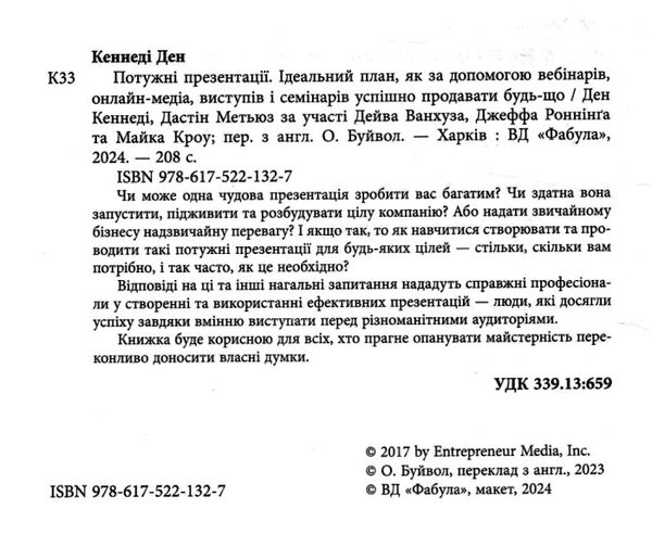 Чи може одна чудова презентація зробити вас багатим? Чи здатна вона запустити, підживити та розбудувати цілу компанію? Або надати звичайному бізнесу надзвичайну перевагу? І якщо так, то як навчитися створювати та проводити такі потужні презентації для будь-яких цілей — стільки, скільки вам потрібно, і так часто, як це необхідно?