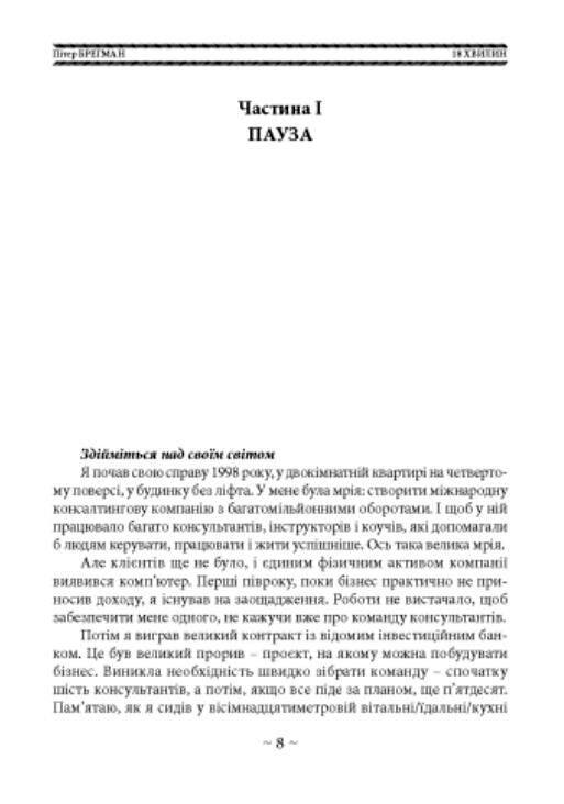 «18 хвилин» — це неймовірно розумний і нескінченно практичний посібник, який пояснює, як ухвалювати обґрунтовані й обмірковані рішення, що варто й чого не варто робити, як справлятися з відволікаючими факторами — іноді використовуючи їх, а іноді уникаючи, — як структурувати час, щоб домогтися максимальної ефективності, як зрозуміти, хто ви, і як краще використовувати ваші здібності, щоб досягти щастя, продуктивності й успіху, з його допомогою ви навчитеся складати план на кожен день, який гарантуватиме, що відтепер усі ваші найважливіші справи будуть зроблені.