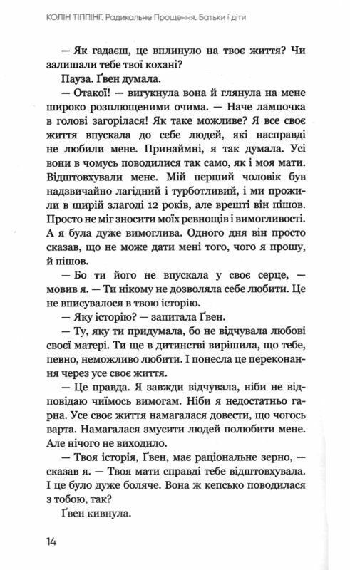 Прощати завжди складно. Однак найскладніше позбутися образ на найрідніших людей. Стосунки батьків і дітей — ціла павутина з безлічі переплетених ниток, і коли деякі з них рвуться, може зруйнуватися уся конструкція довіри й любові. Колін Тіппінг, автор методики Радикального Прощення, знає, яким довгим і тяжким може бути процес відновлення зруйнованих стосунків. Але він також знає, як саме це можна зробити. У книзі «Радикальне Прощення. Батьки і діти» автор пропонує конкретні практичні поради й рекомендації, які допоможуть позбутися негативних почуттів між батьками й дітьми. Він демонструє їх дієвість реальними історіями людей, які багато років тамували в собі образу, однак в певний момент знайшли сили змінити стосунки, а відтак стати щасливішими.