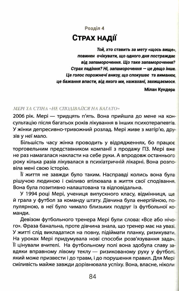 Росс Елленгорн — доктор наук, психотерапевт і консультант з лікування від наркозалежності. У своїй книжці він доводить, що почуття безпорадності й екзистенційної тривоги — це не тривожний розлад і не депресія, а ознака того, що людина не здається попри розчарування, яких зазнала. Вона не втрачає надії, але починає боятися цієї надії, тому що перестала довіряти собі, своїм емоціям, перестала вірити в себе як у джерело правдивої інформації, сумнівається, що може досягти бажаного.