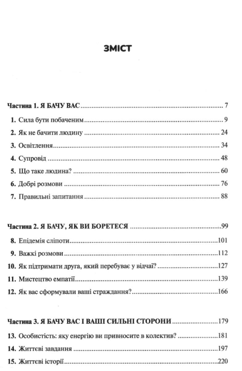 Як часто ми почуваємося невидимими чи непочутими або ж не можемо по-справжньому зрозуміти тих, хто нас оточує. В епоху поверхового спілкування дедалі складніше будувати глибокі зв'язки, бачити інших такими, якими вони є, і давати їм відчути, що вони важливі й помітні. Девід Брукс розкриває секрети міжособистісної взаємодії: як поглянути очима співрозмовника, як стати уважним слухачем, як говорити про складне і підтримати людину, що потрапила в біду. Автор пропонує практичну методику розвитку цих навичок і на численних прикладах показує, як порозумітися і будувати стосунки, основані на довірі. Книга стане в пригоді кожному, хто прагне поліпшити комунікаційні вміння, а також психологам, соціальним працівникам та усім фахівцям, місією яких є допомагати іншим долати життєві негаразди й виходити з них переможцями.