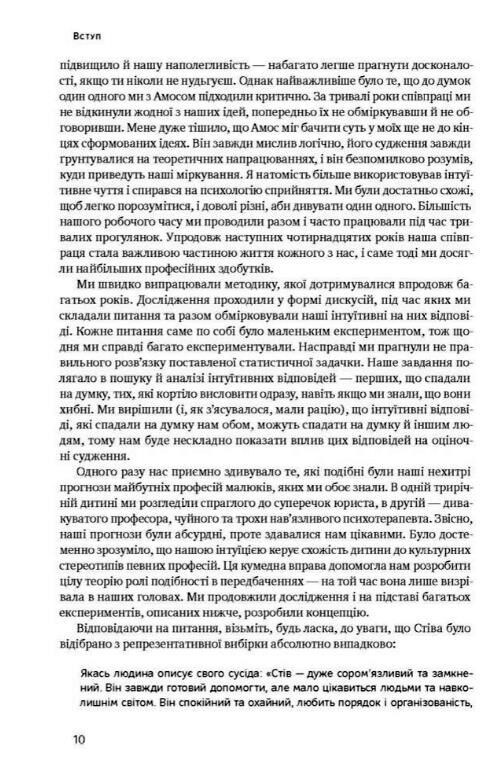 Зазвичай ми вважаємо, що діємо раціонально. Але чи справді це так? На основі досліджень із когнітивної та соціальної психології Деніел Канеман розкриває таємниці роботи людського мозку, описує неусвідомлені упередження, властивості інтуїтивного та усвідомленого мислення, роль емоцій в оцінних судженнях. Без цих знань ви ризикуєте зробити неправильний вибір у магазині, інвестувати в неуспішні проекти й загалом приймати неправильні рішення. «Мислення швидке й повільне» навчить вас ефективно користуватися обмеженим ресурсом уваги, ухвалювати рішення в умовах невизначеності й удосконалювати власні судження. Утім книжка не є сухою інструкцією з експлуатації мозку. Це психологічна драма з двома дійовими особами у вашій голові — інтуїтивним та усвідомленим мисленням.
