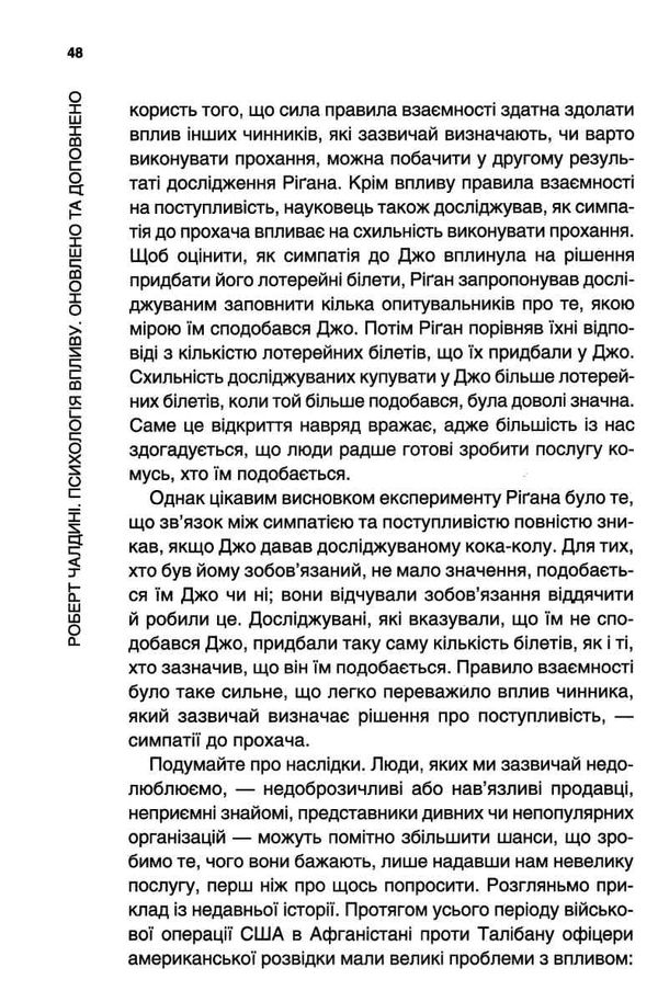 Що може змусити кожну людину сказати «так»? Як переконувати людей та уникати небажаного впливу? Відповіді шукайте на сторінках цієї книги, яка миттєво стала світовим бестселером. Її автор описує методи й закони психологічного тиску й створення конкуренції. Використовуючи яскраві приклади з життя, Роберт Чалдині дає унікальні поради, як викорінити в собі синдром жертви й не потрапити на гачок нав’язливої реклами, а також навчитися самому переконувати й здобувати бажане.