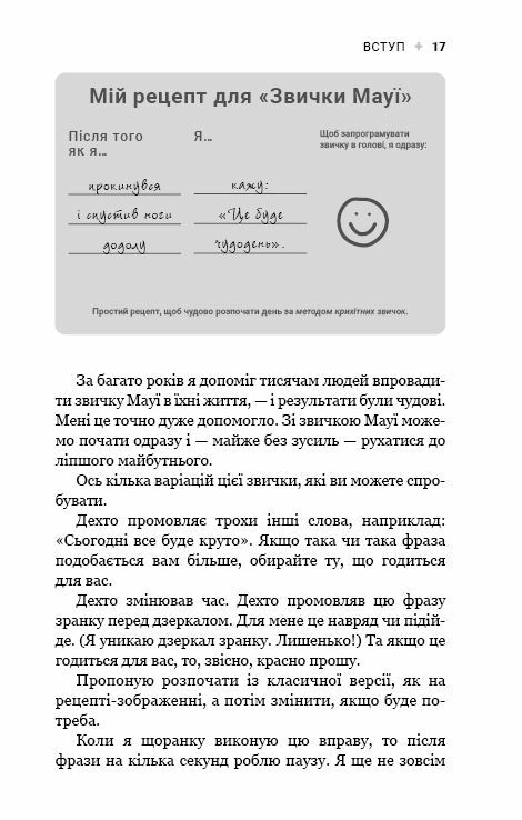 Браян Джефрі Фоґґ, доктор психології, засновник Стенфордської лабораторії формування поведінки й легенда Силіконової долини, зламав код, що відповідає за утворення звичок. Його метод Tiny Habits ґрунтується на понад 20 роках досліджень і спостережень над майже 60 000 людей і дає ключі, які допоможуть вам: почати займатися спортом і схуднути; знайти час на медитацію і ліпше спати; підвищити продуктивність роботи і якість відпочинку; відкрити двері до нового й щасливого життя. Для цього вам не потрібна сила волі — достатньо почати з маленьких кроків, які змінять усе. Забудьте про виснажливі марафони, які не приносять результату. Забудьте про психологічні установки, що тривають тижнями. Забудьте про почуття вини. Про те, як вам погано. Змінити ваше життя значно легше, ніж ви думаєте. Просто оберіть звичку, зробіть її крихітною, зрозумійте, як легко запровадити її у своє життя, й дайте їй вирости.