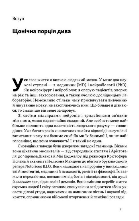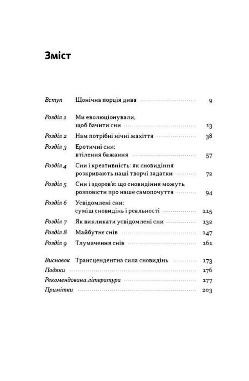 застосовувати наукову методику тлумачення снів. Арістотель, Зиґмунд Фройд, Чарльз Дікенс, Крістофер Нолан, інші мислителі, науковці і творці знаходили у снах безліч ідей, приховані шляхи до глибин власної свідомості. У віртуальній лабораторії вашого мозку також генеруються цілі нові світи. Ця книжка навчить вас їх розуміти.