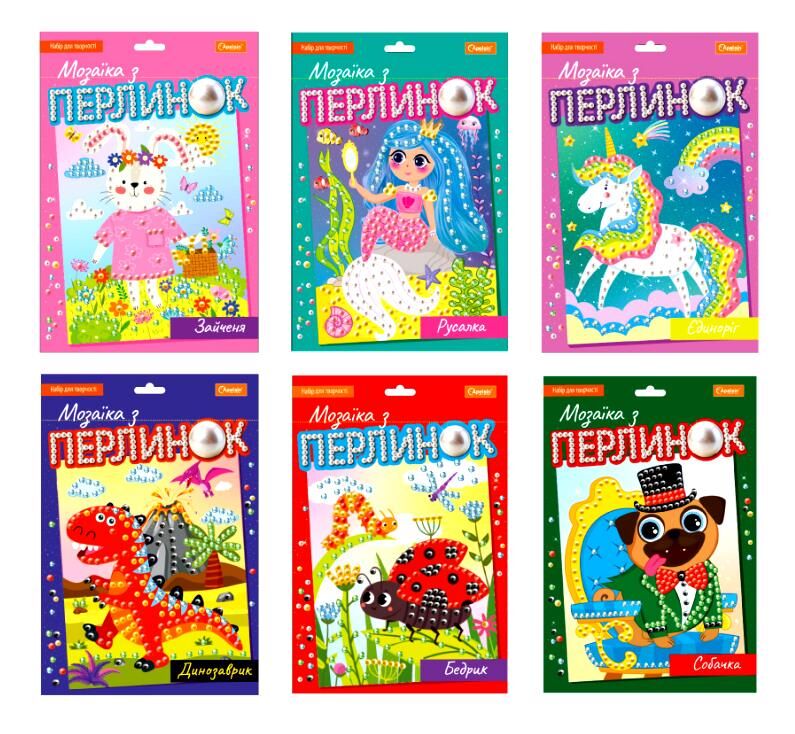 - декоративні перлинки на клейкій основі 5 кольорів (кожен колір на окремій пластиковій основі);