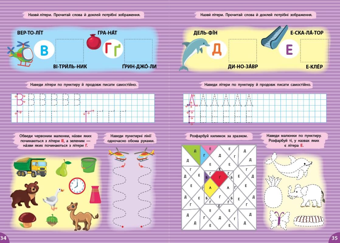 "На сторінках книжки «Прописи» дитина писатиме друковані літери українського алфавіту, розпізнаватиме їхнє графічне зображення та визначатиме місце в слові, а також малюватиме фігури, штрихуватиме й писатиме лінії в різних напрямках лівою і правою рукою по черзі чи одночасно, обводитиме по пунктиру елементи сюжетних малюнків і розфарбовуватиме їх, повторюватиме лінії та зображення по точках, домальовуватиме половину малюнка чи відтворюватиме його повністю за зразком по клітинках. Видання містить цікаві ігрові завдання, виконання яких потребує використання наліпок, що буде корисним для дрібної моторики, сприятиме синхронізованій роботі мозку й рук, потренує увагу та пам’ять, розвине уяву та логічне мислення, а також допоможе дитині якісно підготуватися до школи. Видання призначене для дітей старшого дошкільного віку та їхніх батьків."