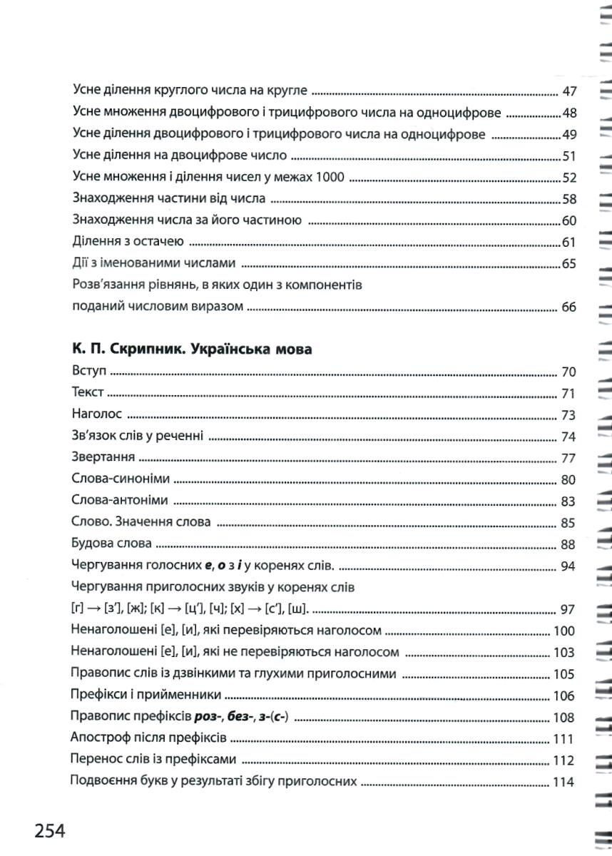 - математика: додавання і віднімання чисел у межах 100, табличне множення та ділення, розв’язання рівнянь, знаходження частини від числа, ділення з остачею, дії з іменованими числами тощо;