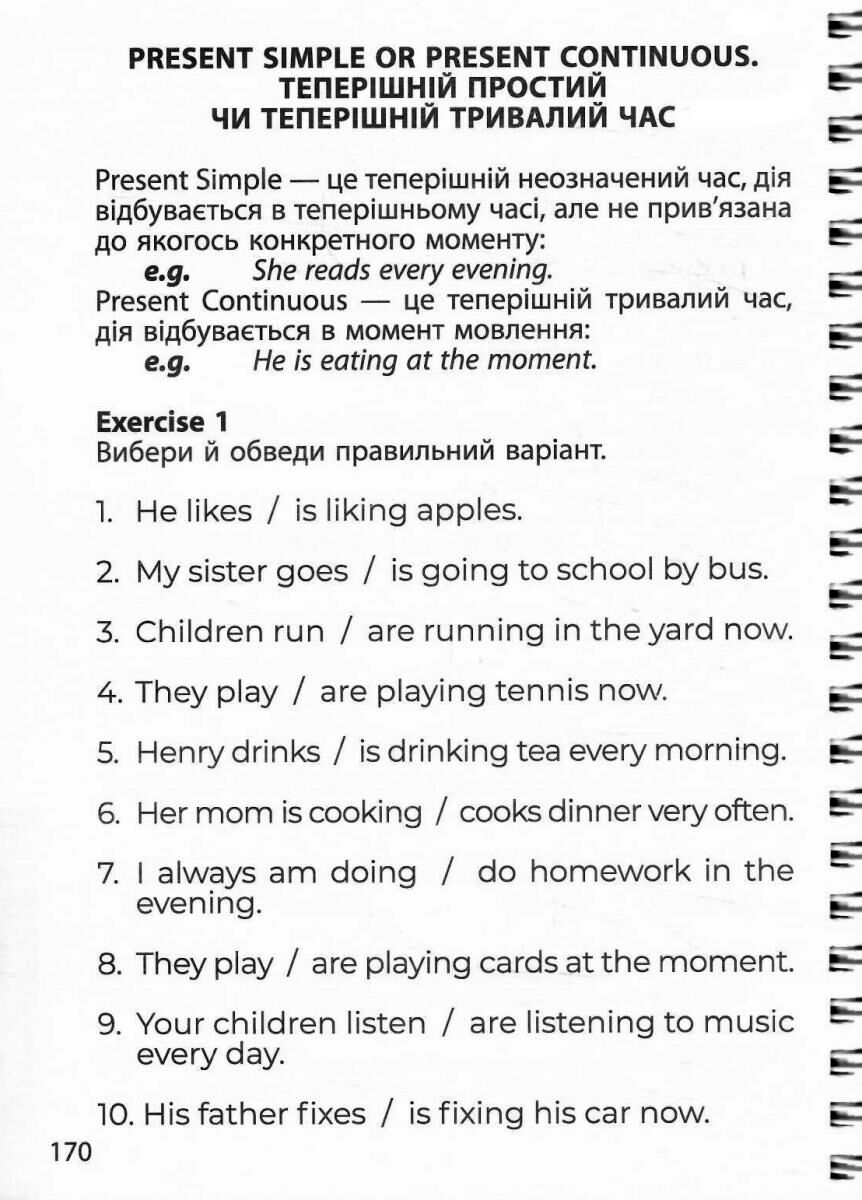 - англійська мова: утворення множини іменників, вживання модальних дієслів, артиклів, прийменників часу та місця, правильних та неправильних дієслів, утворення заперечних і питальних речень, форм теперішнього тривалого та теперішнього простого часів тощо.