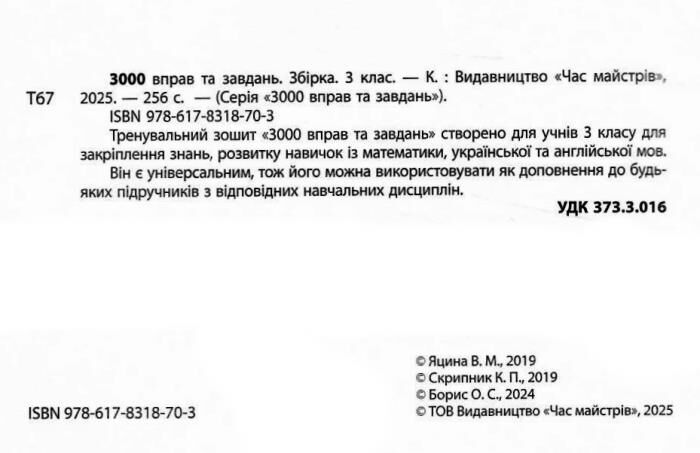Збірка для учнів 3 класу створена для закріплення знань з трьох ключових дисциплін: математики, української та англійської мов.