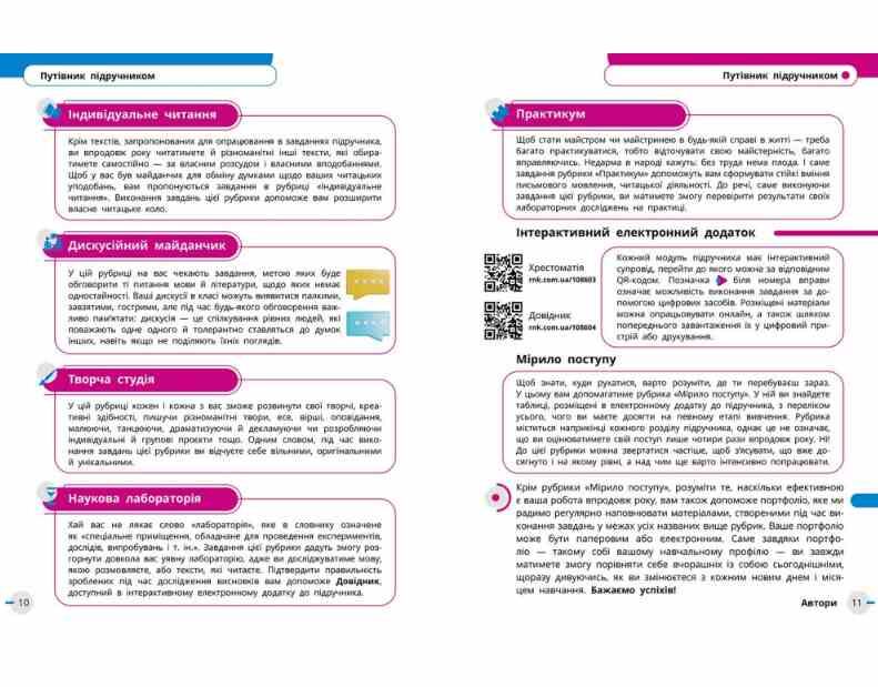 Підручник розроблений відповідно до модельної навчальної програми «Інтегрований мовно-літературний курс (українська мова, українська та зарубіжні літератури). 7-9 класи» для закладів загальної середньої освіти (автори Старагіна І. П., Новосьолова В. І., Терещенко В. М., Романенко Ю. О., Блажко М. Б., Ткач П. Б., Панченков А. О.) Пропонує вивчення мовних тем на основі роботи з художніми текстами з української та зарубіжної літератур.
