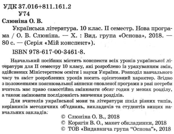 слюніна українська література 10 клас 2 семестр мій конспект книга купити